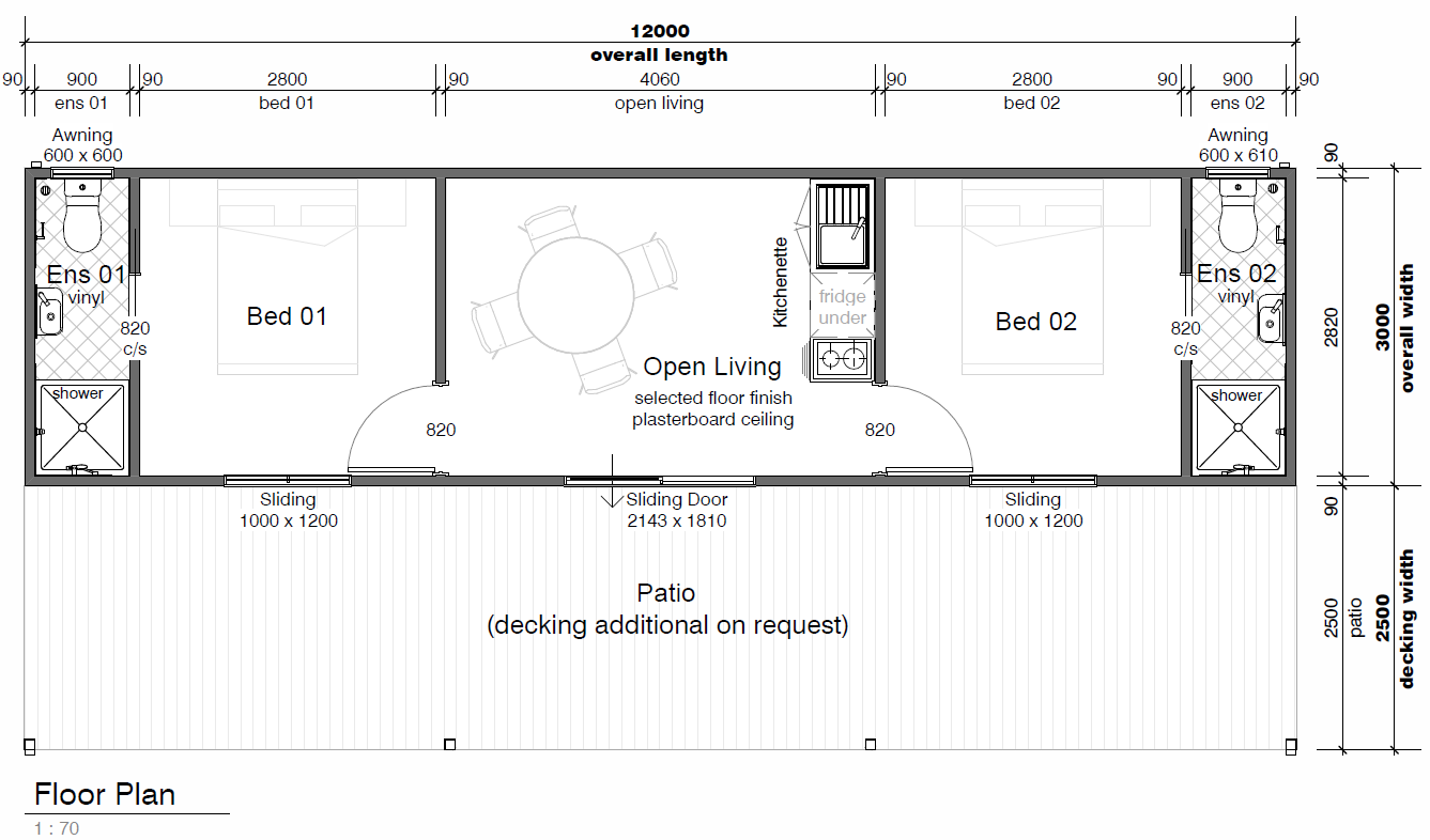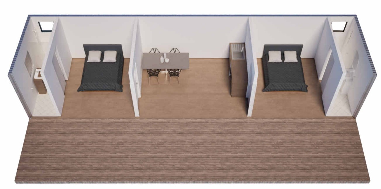 - It comes standard with two same sized bedroom ensuite bathroom shower areas