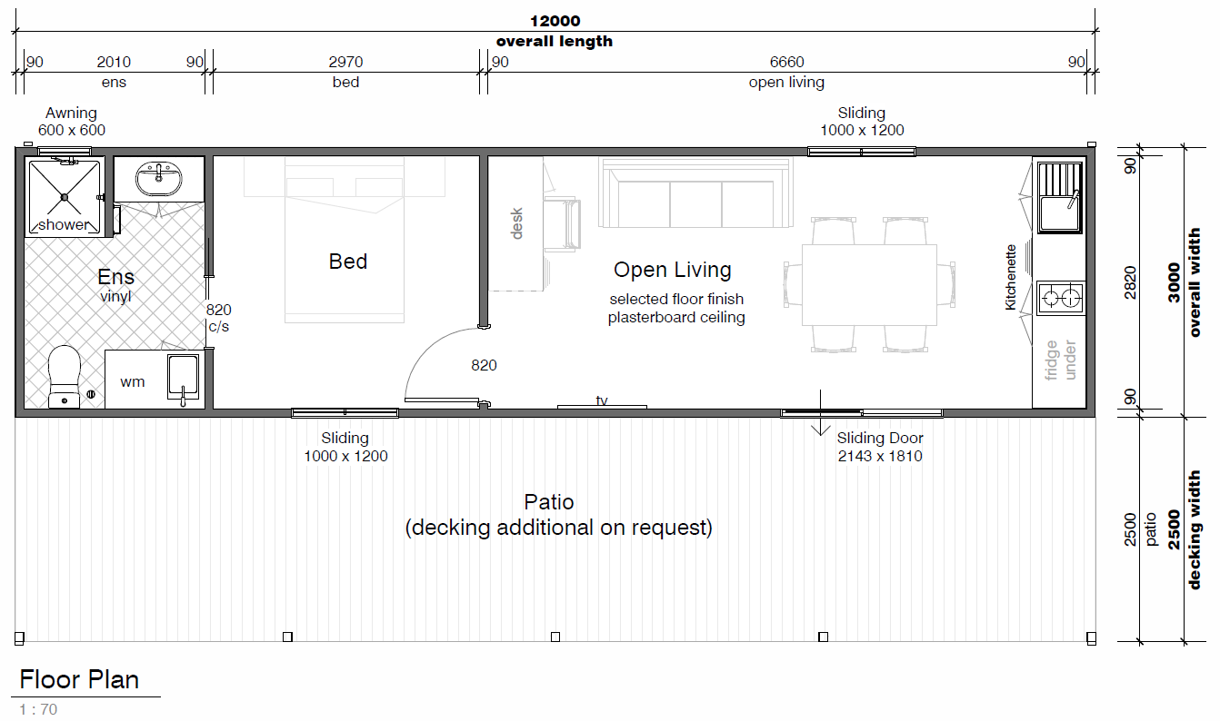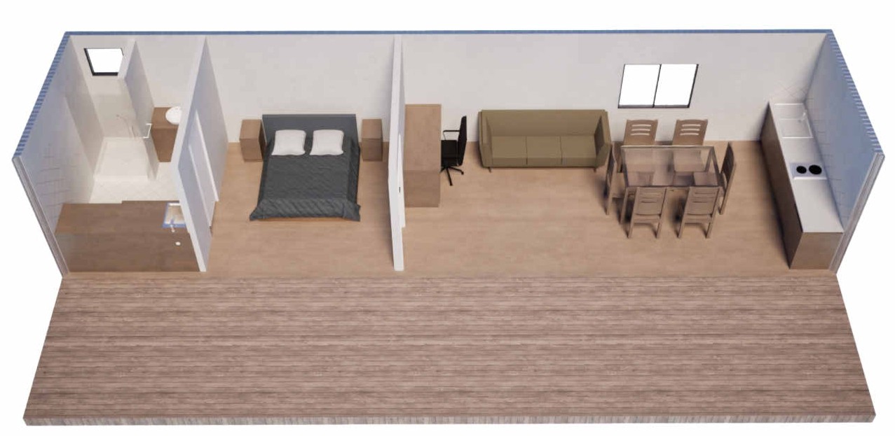 - Kitchenette and living area aligned to the patio easy access, natural light and improved flow.