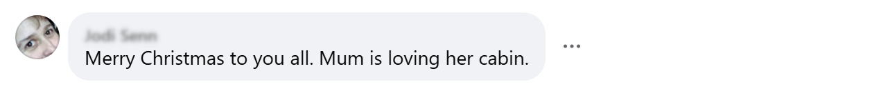 Another message highlighted something we hear often: cabins aren’t just loved by the person who lives in them, but by the entire family. In this case, a mum who is enjoying her cabin and embracing the comfort and practicality it provides. These builds are often created to allow loved ones to live independently while remaining close to family, offering peace of mind and a place that truly feels like home.